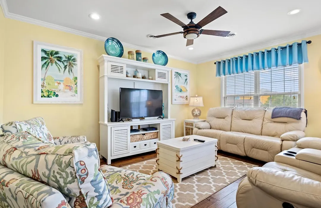 Upscale, Stylish, Raised 3 Bedroom Beach House Sleeps 7! Myrtle Beach villa is located a 10-minute ride from the energy Wild Water and Wheels and invites guests to enjoy a patio.